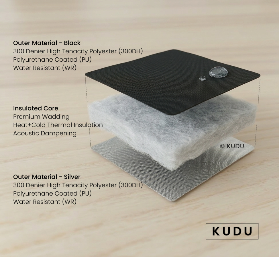 Premium thermal screen covers that keep your van warmer in winter, cooler in summer, and completely blacked out.
